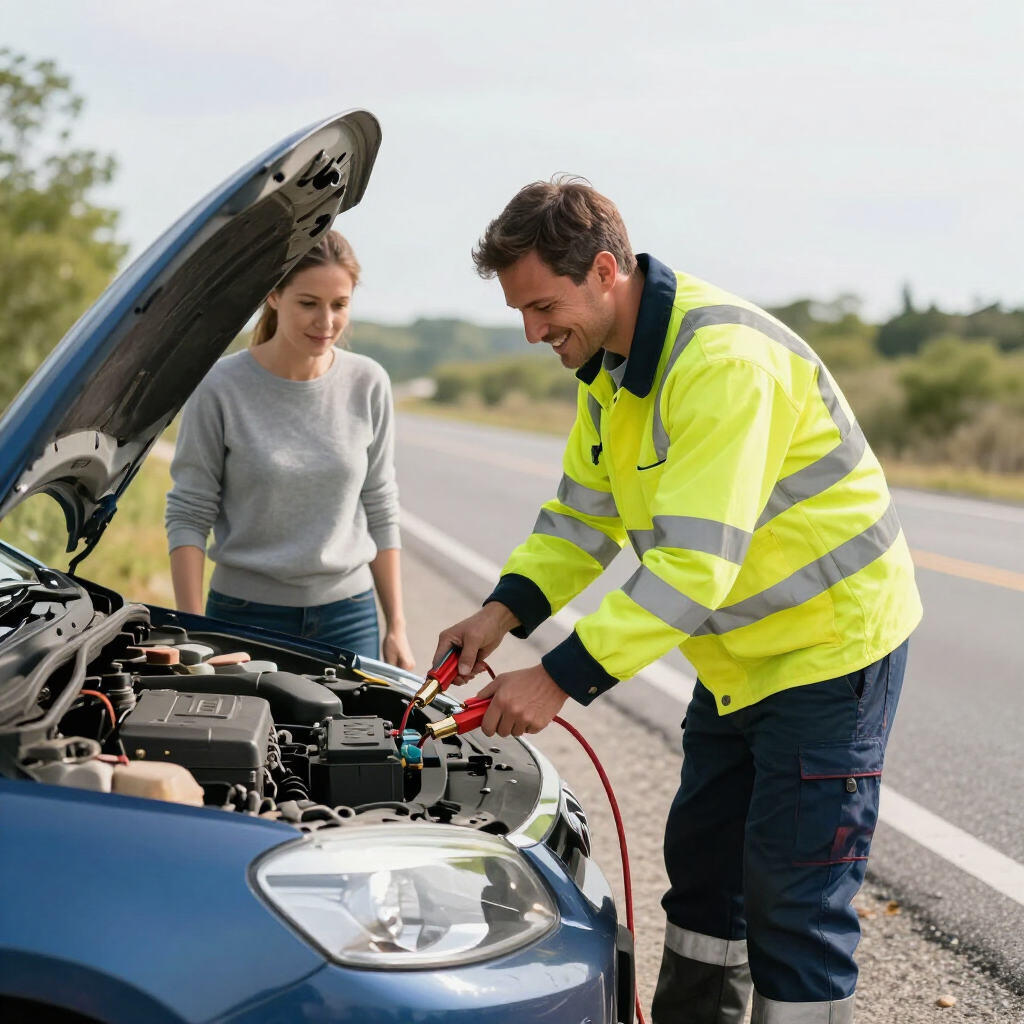 We provide 24-hour roadside assistance, including tire changes, mobile tire repairs, fuel delivery, lockout services, jump starts, and battery replacements.